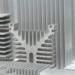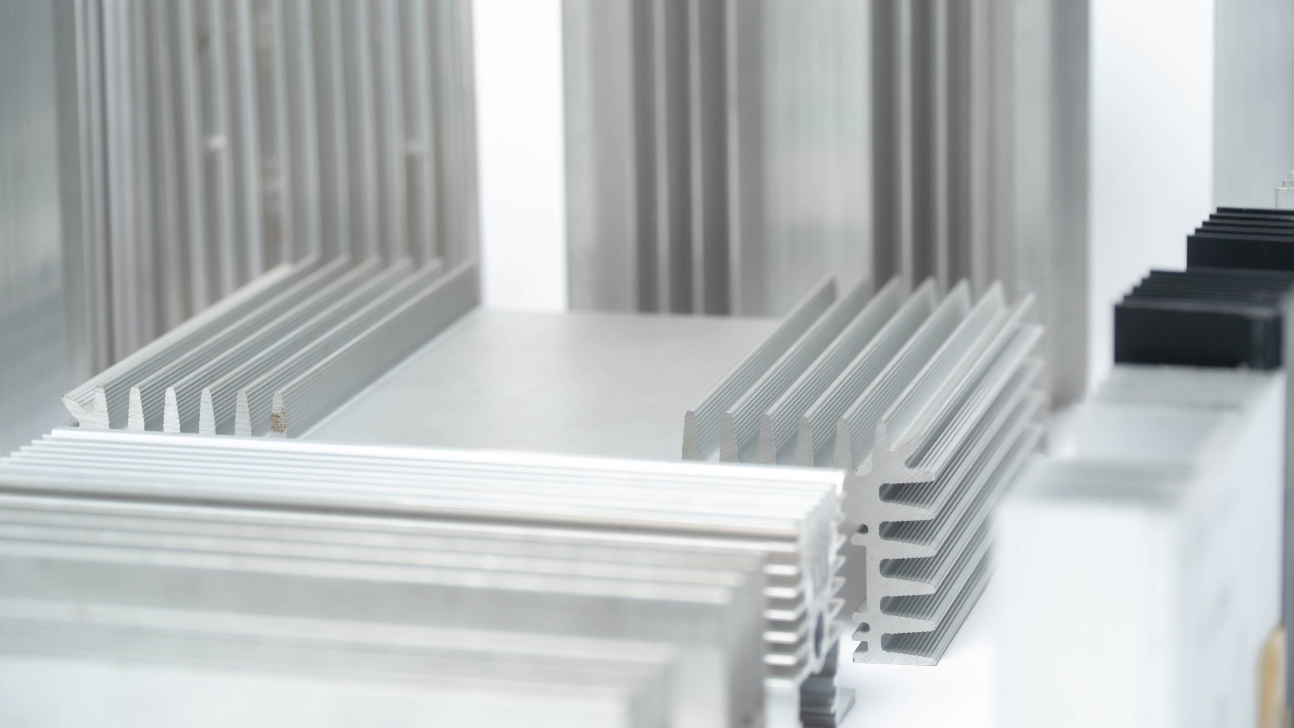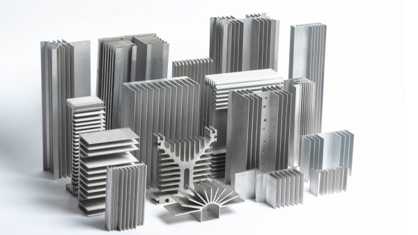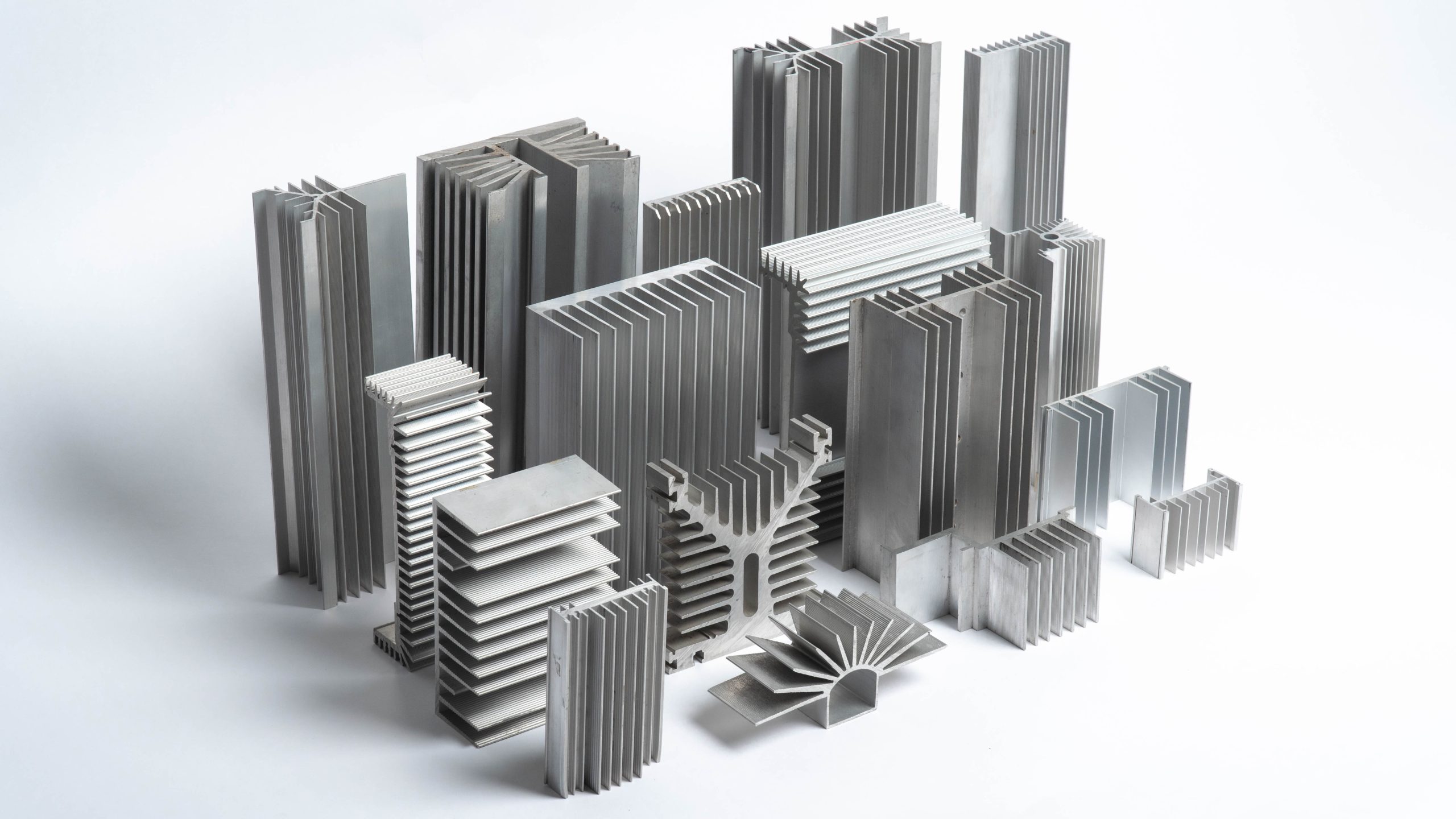 Thermal management components made from extruded aluminium, available in various sizes—from compact models for PCB and home electronics to larger models used in solar-powered LED street lighting.